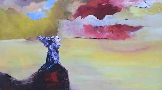 Hacia Fuera de serie, mi último trabajo, compuesto por varias obras de pequeño formato, con técnica mixta, y un personaje que me enamora, aislado, con una escafandra que oculta su rostro. Está completamente cubierto con un traje y tiene guantes. Está preparado para lo que venga, tiene su tanque de oxígeno, no tiene género ni edad, es simplemente humano. Es un ser dispuesto a sumergirse, a caminar sobre el agua, a estar en el cielo y en las nubes. Es un “todoterreno” que atraviesa distintos escenarios que le fui creando; creo que por esa cualidad me enamoré de él.